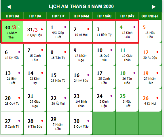 (Từ 30/3-04/4/2020)