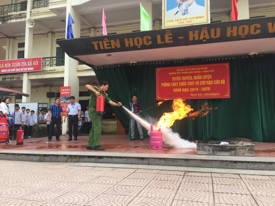 Ngày 14/10/2019 trường THPT Phùng Khắc Khoan - Thạch Thất tổ chức tuyên truyền, huấn luyện Phòng cháy chữa cháy và cứu nạn cứu hộ năm học 2019-2020.